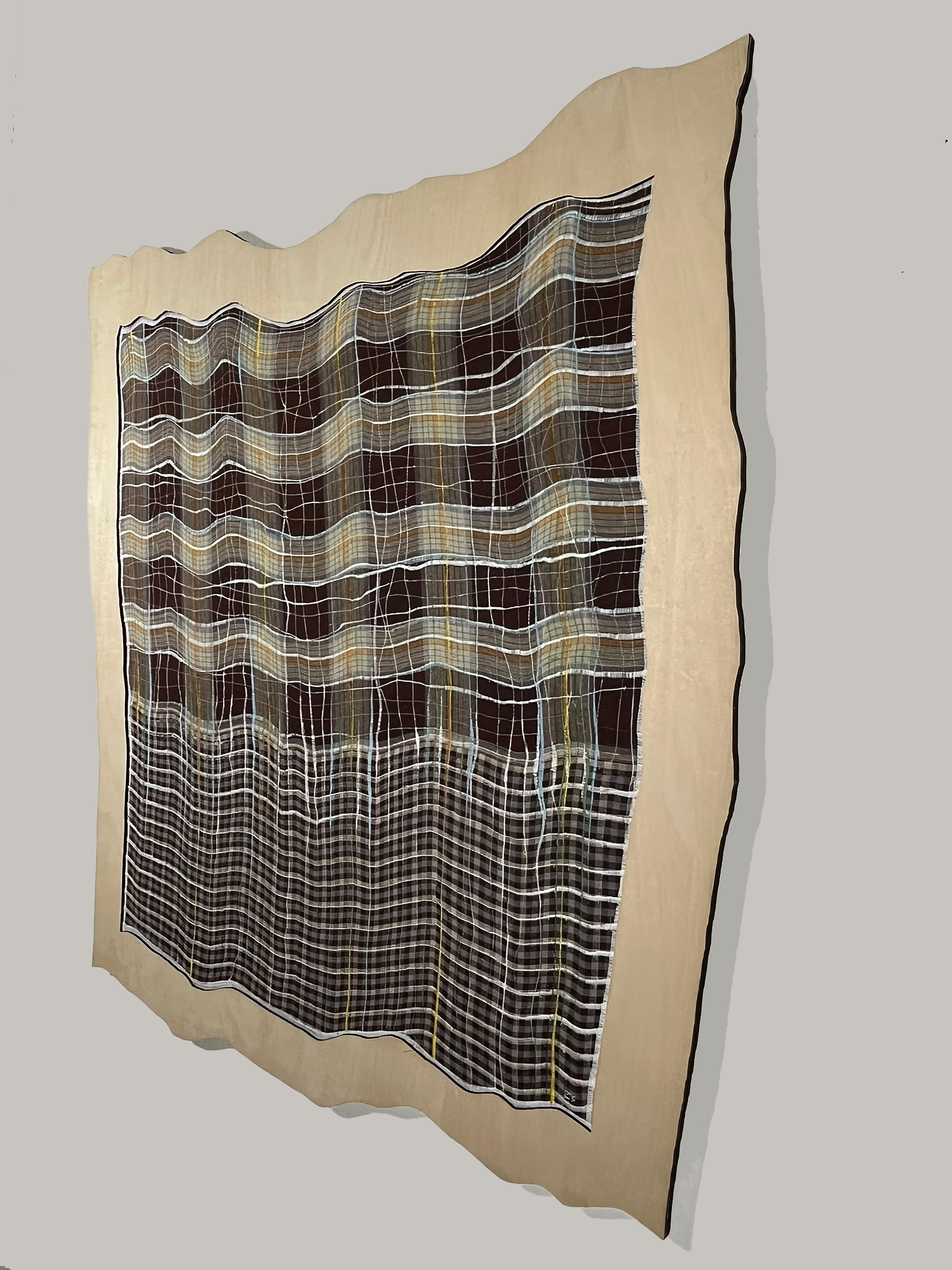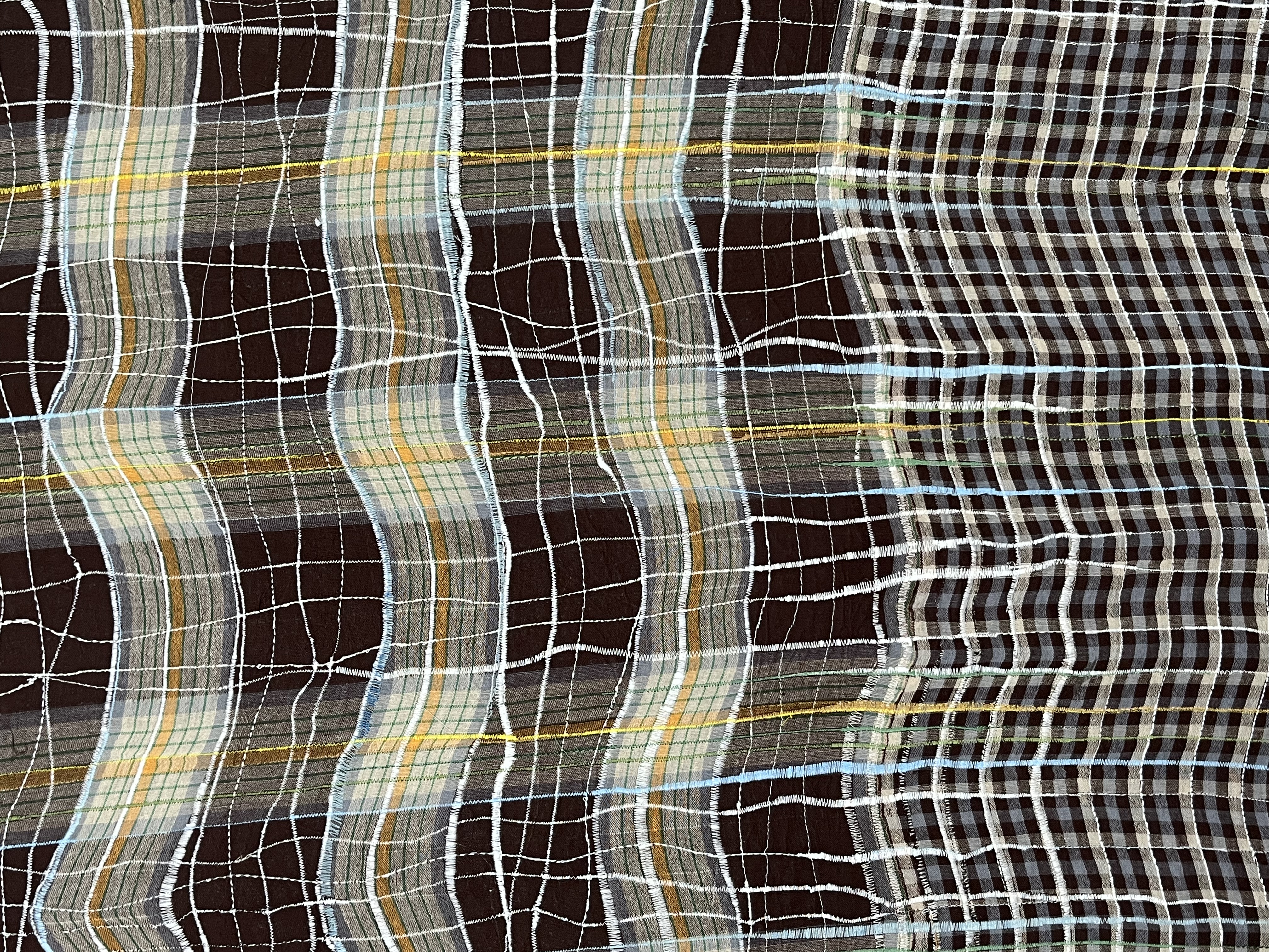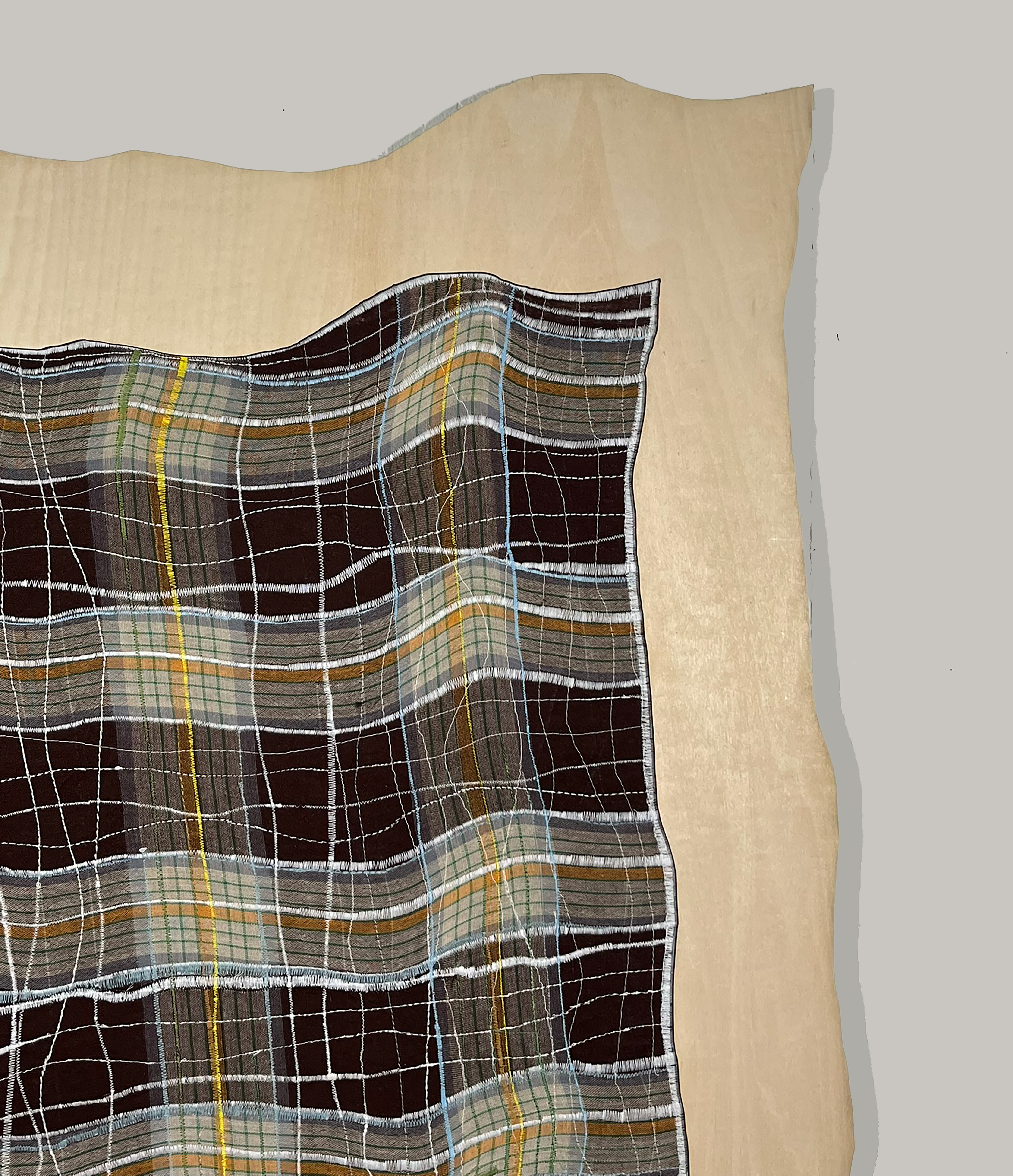 Material: Textile with machine stitching, framed in multiplex