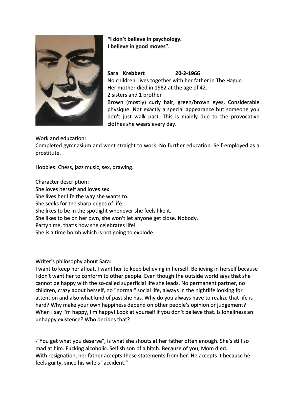 a non-narrative story about Sara Krebbert